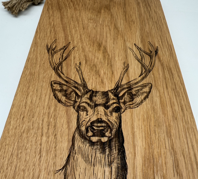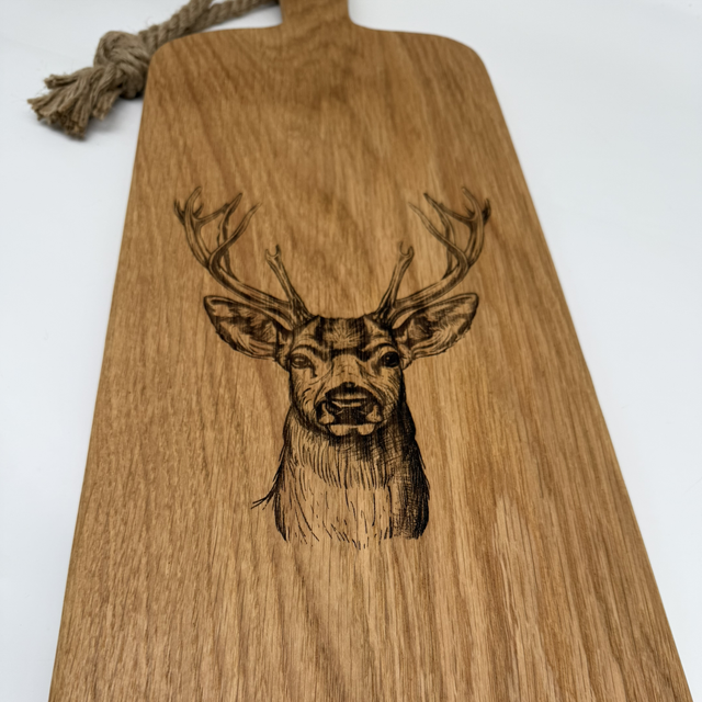 Handcrafted Oak Charcuterie & Serving Board – Engraved Stag Design
